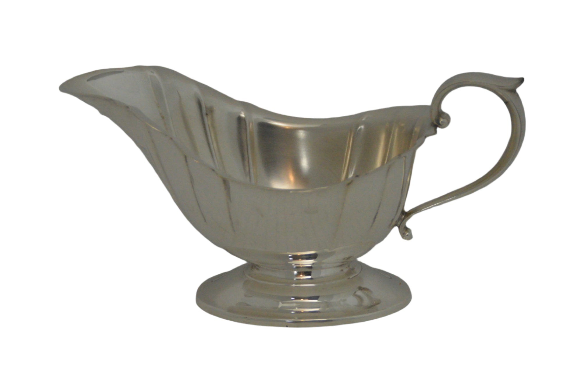 This vintage silver-plated gravy boat, in perfect pre-owned condition, adds timeless charm to your dining table.