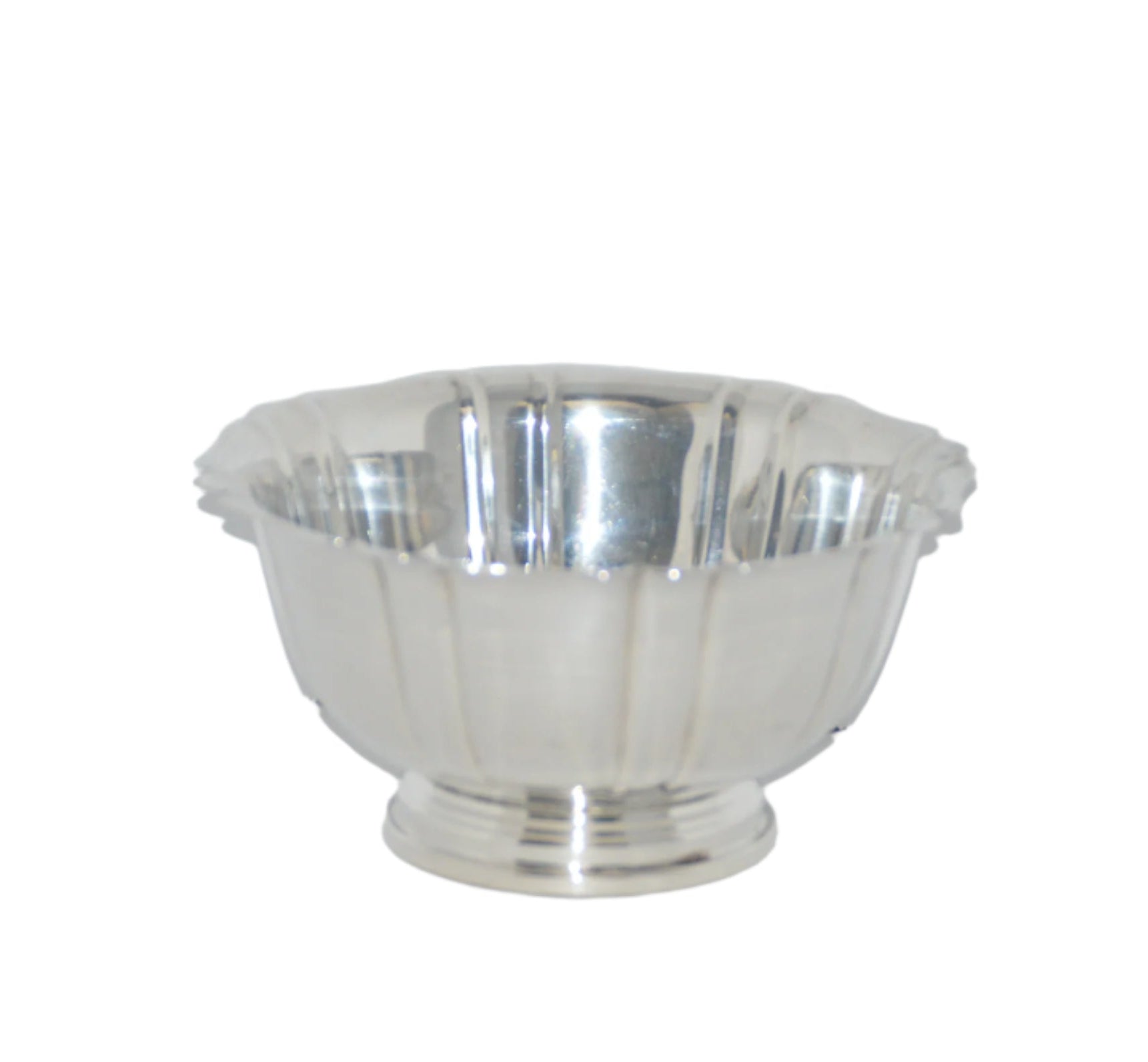 Crafted by Pilgram, this vintage silver-plated bowl (pre-owned) measures 7 3/4" wide and 4" deep, showcasing timeless style and superior quality.