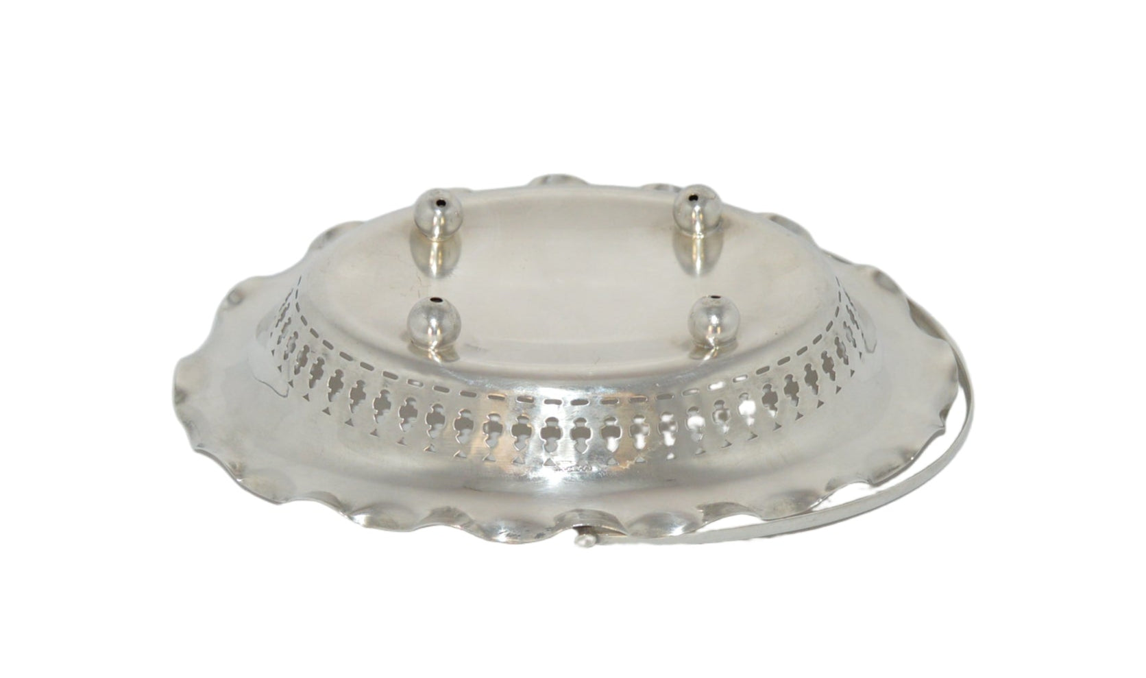 Add a touch of timeless elegance to your table with this vintage silver-plated bread basket. Featuring a sturdy handle for easy serving, its classic design enhances any dining setting.